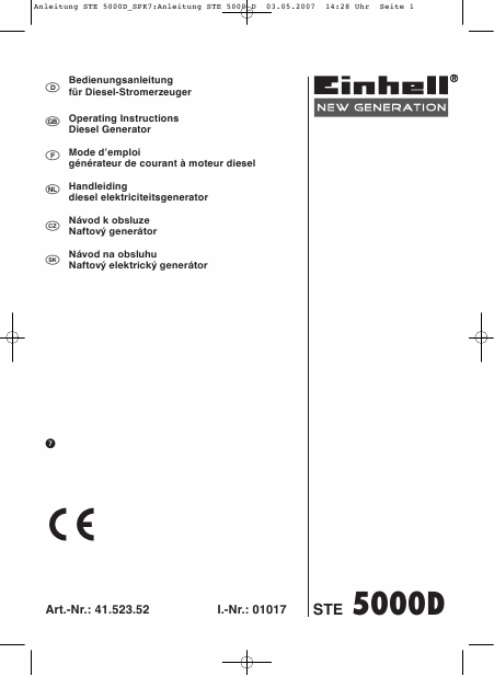 Download EINHELL STE 5000D Users Guide German (8 Pages) 15.90 EUR