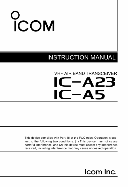 ICOM IC-A23 Istruzione Inglese
