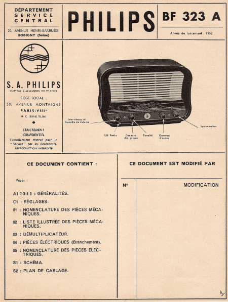 PHILIPS BF 323 A (BF323A) Manuale di servizio Francese