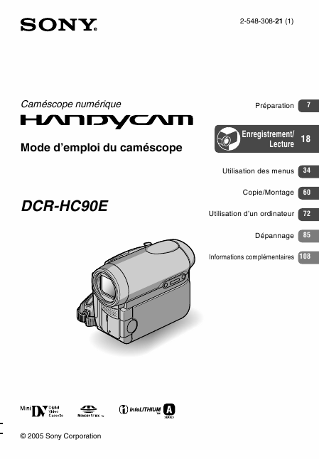 SONY Handycam DCR-HC90E Users Guide French