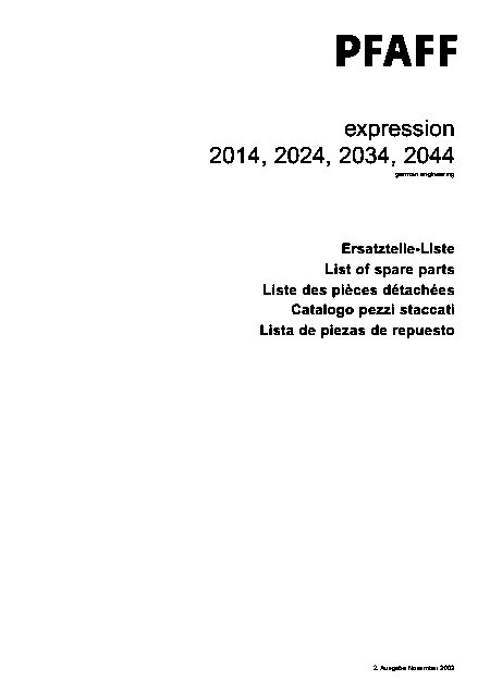 Download PFAFF 2024 Expression Ersatzteile Englisch (20 Seiten) 39.90 EUR