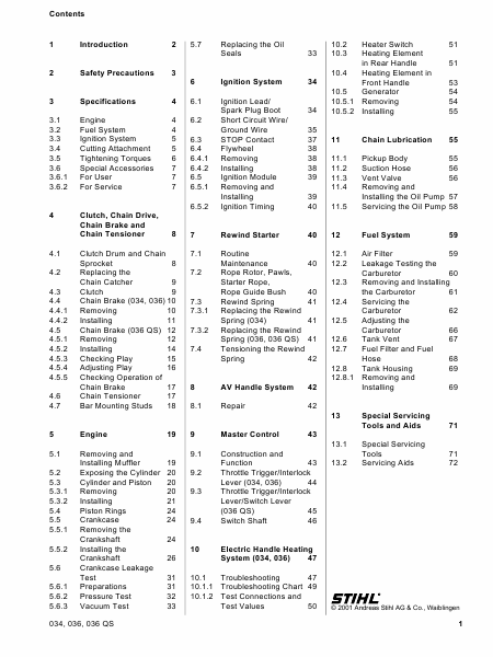 Telecharger STIHL 034 Manuel de service Anglais (72 Pages) 15.90 EUR