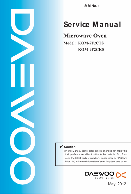 DAEWOO KOM-9F2CTS Serviceanleitung Englisch