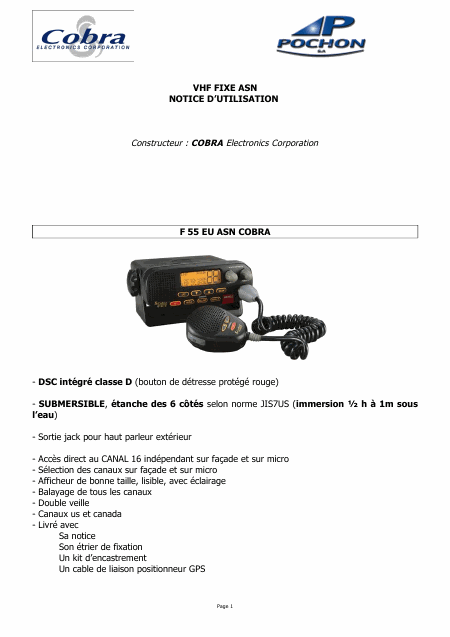 Download COBRA MR F55 EU Users Guide French (10 Pages) 39.90 EUR