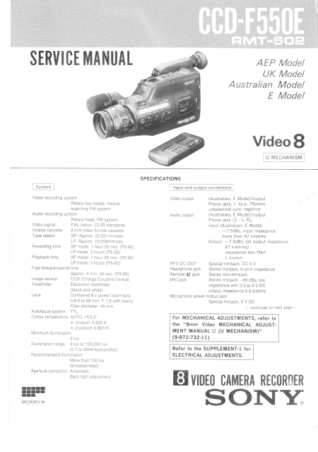 SONY CCD-F550E Manuel de service Anglais