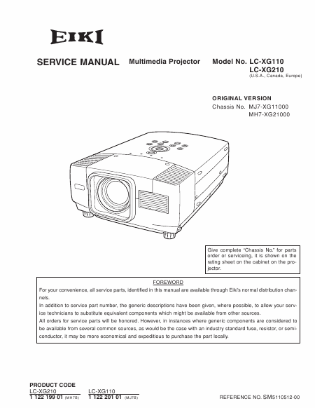 Download EIKI Chassis MJ7-XG11000 Service Manual English (106 Pages) 15.90 EUR