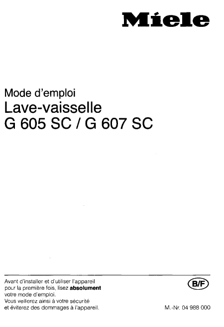 Download MIELE G 607 SC Users Guide French (66 Pages) 15.90 EUR