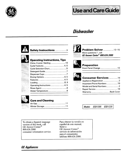 GE (GENERAL ELECTRIC) GSD1235 Istruzione Inglese