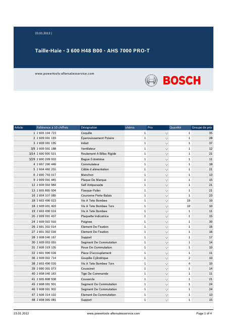 Baixar BOSCH AHS 7000 PRO-T Lista de peças Francês (5 Pages) 15.90 EUR