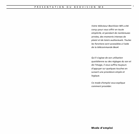 BANG & OLUFSEN BeoVision MX 4000 / 6000 / 7000 Users Guide French