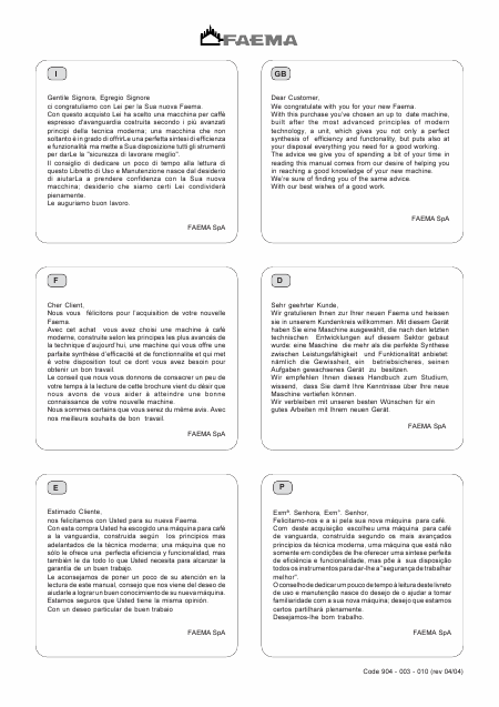 Download FAEMA Smart-A Due Anleitung Spanisch (33 Seiten) 15.90 EUR
