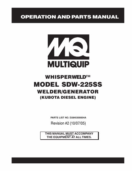 MULTIQUIP SDW-225SS Lista de piezas de repuesto Inglés