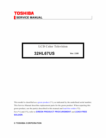 TOSHIBA 37HL67US Regza (Ver. 2.00) Service Manual English