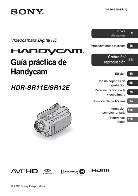 Descargar SONY HDR-SR12E Guía del usuario Español (133 Páginas) 12.90 EUR