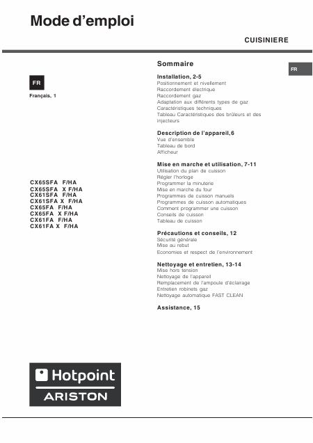 Download HOTPOINT CX65SFA Anleitung Französisch (16 Seiten) 12.90 EUR