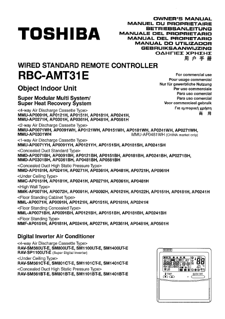 TOSHIBA RBC-AMT31E Istruzione Inglese