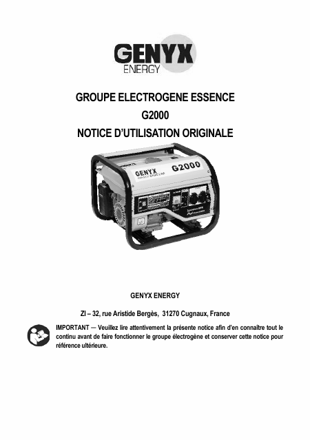 GENYX G2000 Mode emploi Français