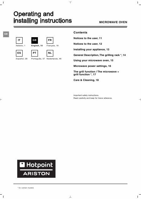 Descargar ARISTON MWHA 212 (MWHA212) Guía del usuario Inglés (10 Páginas) 15.90 EUR