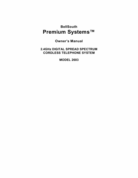 BELLSOUTH 2603 Istruzione Inglese