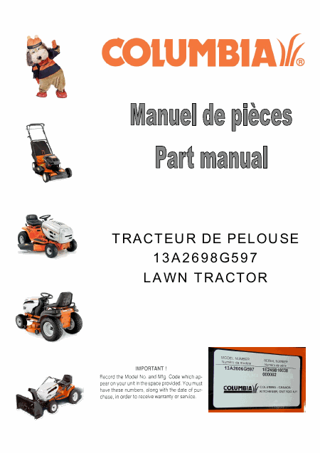 COLUMBIA 13A2698G597 Ersatzteile Englisch