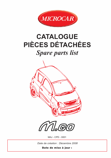 Telecharger MICROCAR M.GO (2008) Liste pieces detachees Français (110 Pages) 15.90 EUR