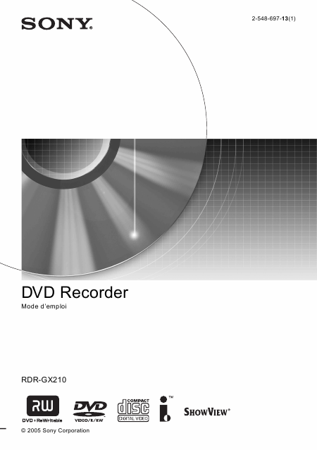 Telecharger SONY RDR-GX210 Mode emploi Français (108 Pages) 12.90 EUR