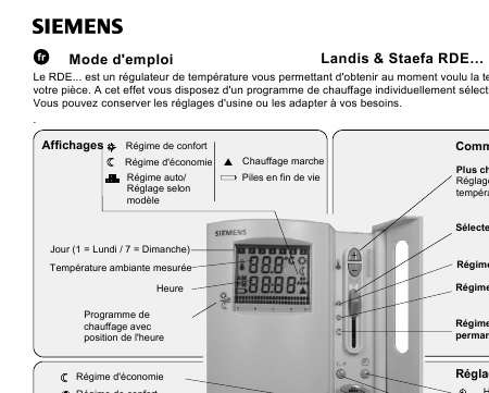 Telecharger SIEMENS Landis & Staefa RDE... Mode emploi Français (3 Pages) 15.90 EUR