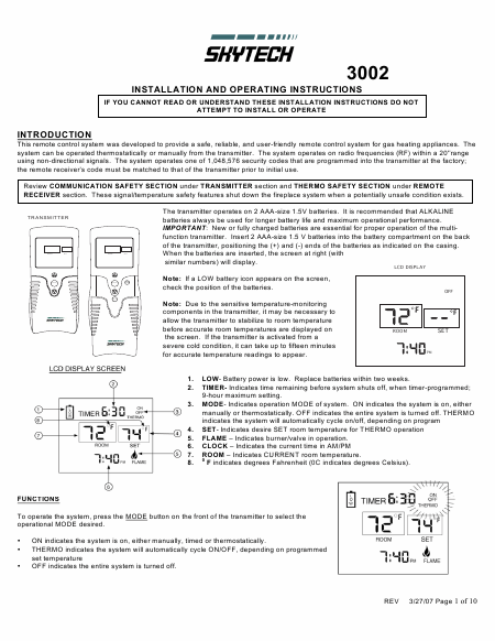 SKYTECH 3002 (SKY-3002) Anleitung Englisch
