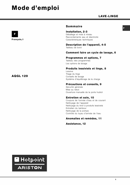 Baixar ARISTON AQGL 129 (AQGL129) Instruções Francês (12 Pages) 12.90 EUR