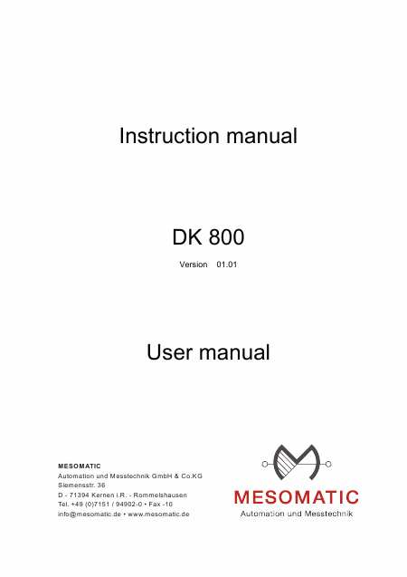 Baixar MESOMATIC DK800 Instruções Inglês (150 Pages) 59.90 EUR