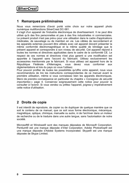 SILVERCREST DC-581 Users Guide French