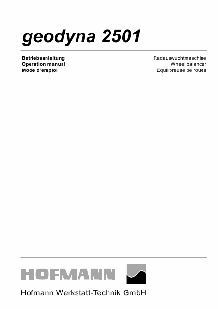Download HOFMANN Dynaliner 2501 WM Anleitung Englisch (104 Seiten) 59.90 EUR