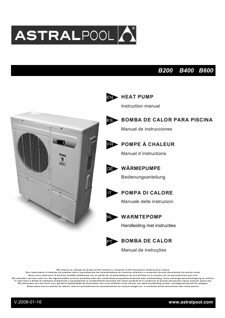 Download ASTRALPOOL B600 Users Guide French (21 Pages) 15.90 EUR