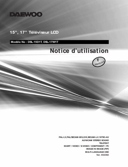 DAEWOO DSL-15D1T Mode emploi Français