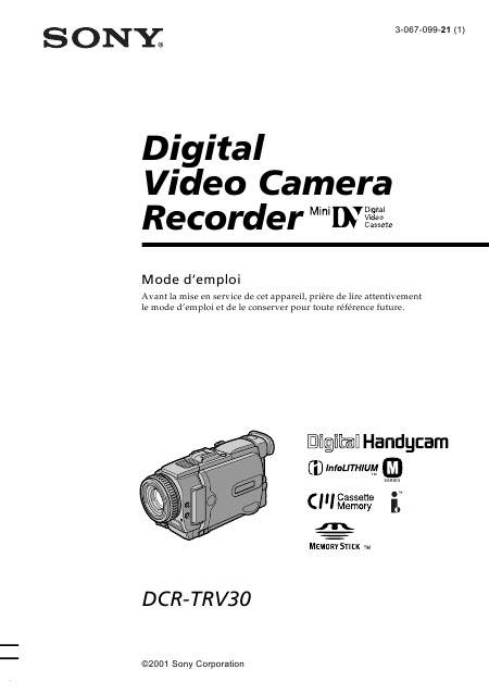 Baixar SONY DCR-TRV30 Instruções Francês (188 Pages) 12.90 EUR
