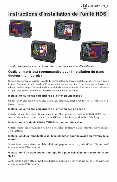 LOWRANCE HDS-7 (HDS7) Installation Manual French