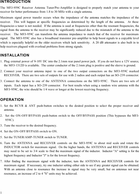 MFJ 959C Instruções Inglês