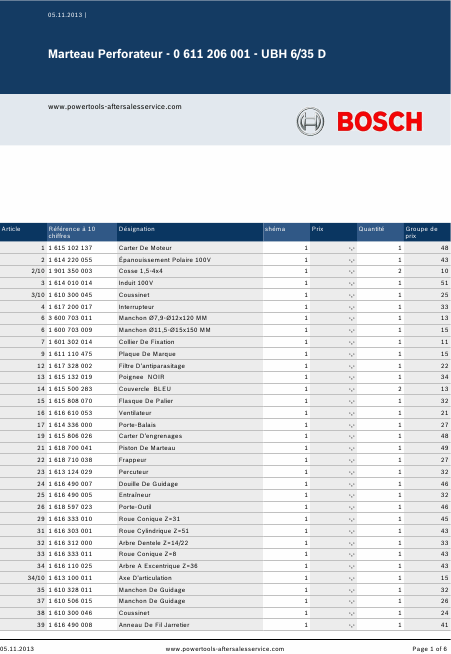 Baixar BOSCH UBH 6/35 D Lista de peças Francês (6 Pages) 15.90 EUR
