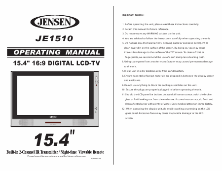 JENSEN JE1510 Anleitung Englisch