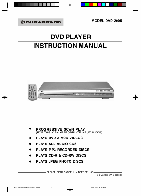 Baixar DURABRAND DVD-2005 Instruções Inglês (42 Pages) 15.90 EUR