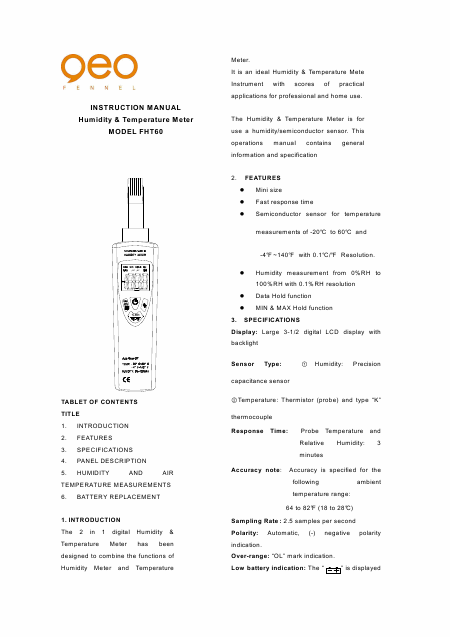 GEO FENNEL FHT 60 Istruzione Inglese