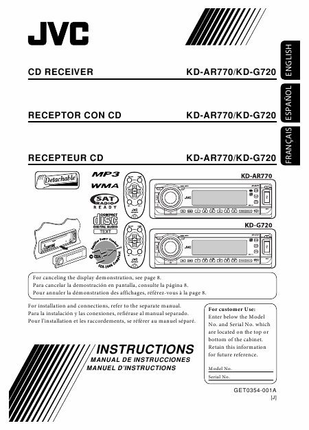 Download JVC KD-AR770 (KDAR770) Users Guide English (46 Pages) 15.90 EUR