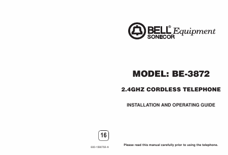 BELL BE-3872 (BE3842) Manuel installation Anglais