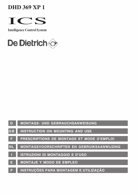 DE DIETRICH DHD369XP1 Users Guide Dutch