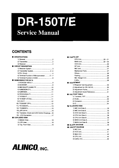 Download ALINCO DR-150T/E Service Manual English (44 Pages) 15.90 EUR