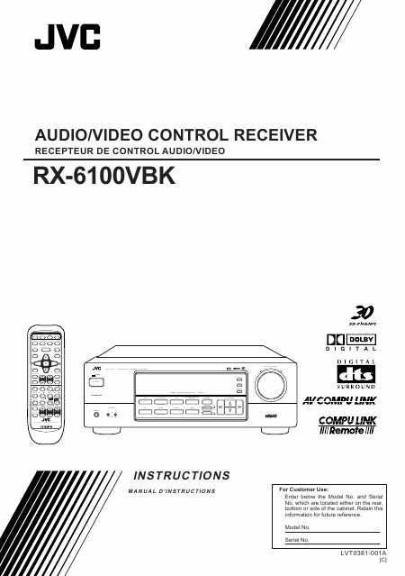 Telecharger JVC RX-6100VBK Mode emploi Anglais (38 Pages) 15.90 EUR