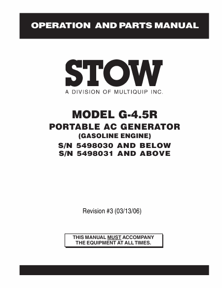 MULTIQUIP G-4.5R STOW Guía del usuario Inglés