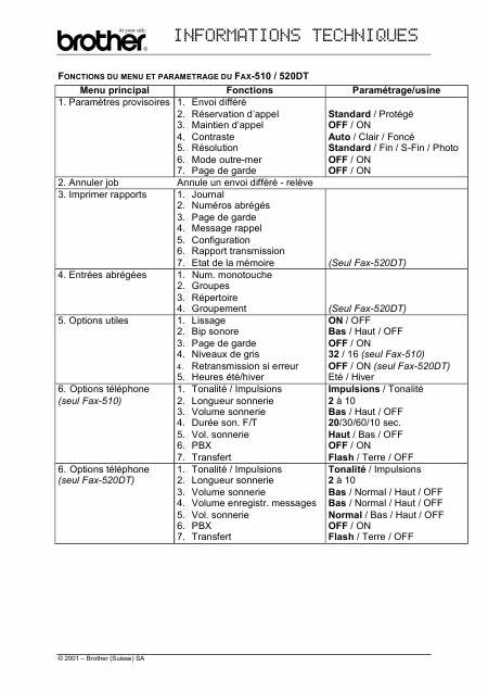 Descargar BROTHER FAX-510 / FAX-520DT Guía de inicio rápido Francés (0 Páginas) 12.90 EUR