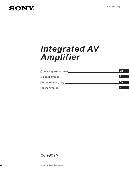 Baixar SONY TA-VE610 (TAVE610) Instruções Inglês (30 Pages) 15.90 EUR