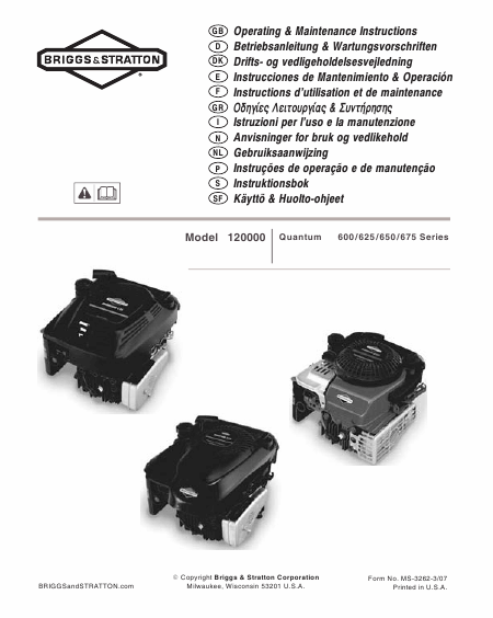 BRIGGS & STRATTON 120000 Series Istruzione Francese